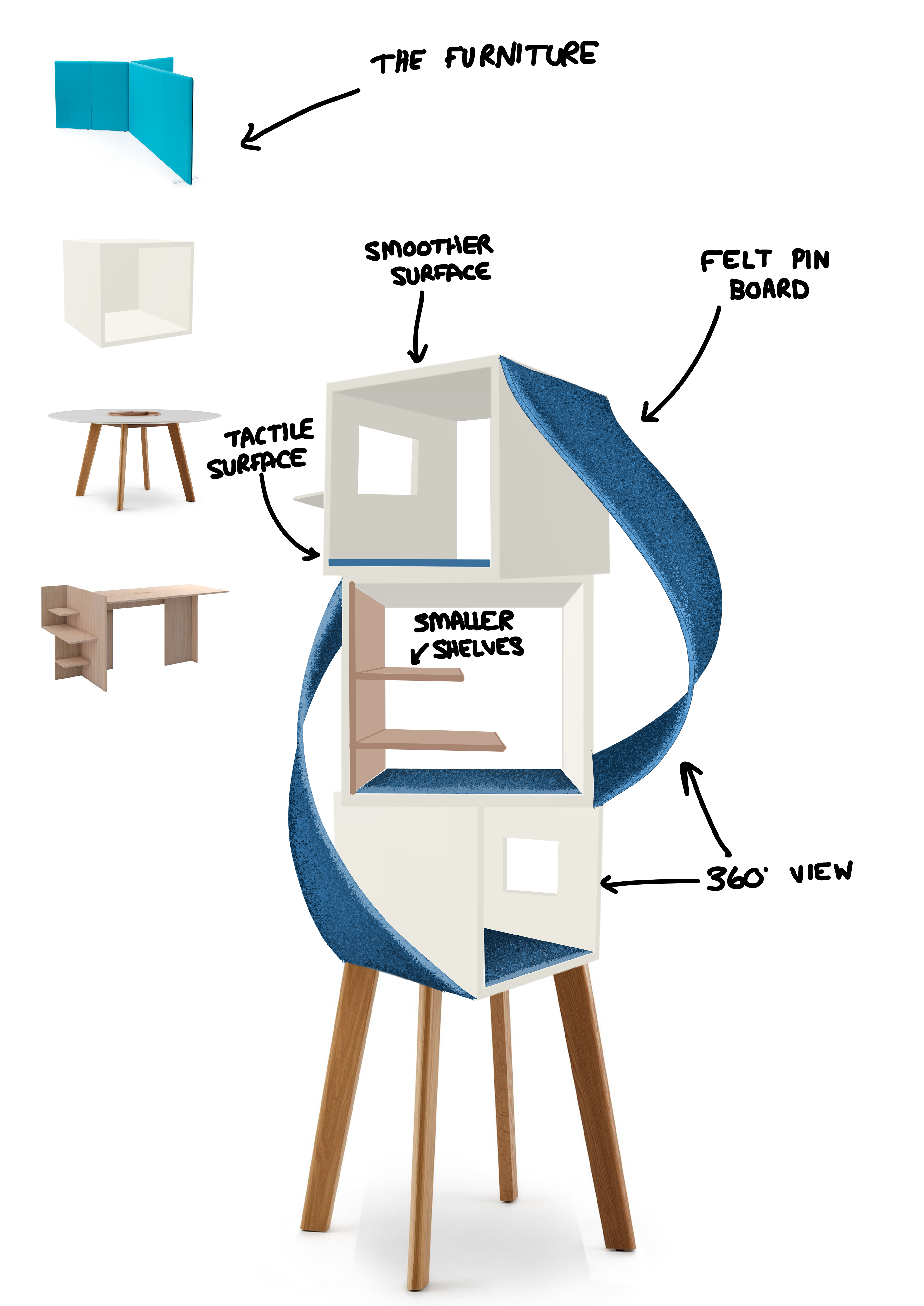 In this unit, I worked with Haworth, an office furniture company in London to design a product to make offices more accessible. My design was then chosen to be displayed at Haworth during Clerkenwell Design Week.